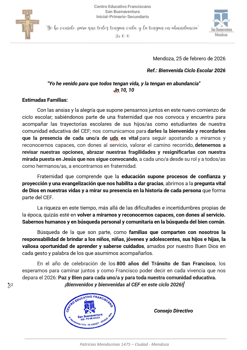 Les deseamos un muy feliz comienzo del ciclo 2026, en la certeza de que nuestro buen Dios nos siga mostrando los caminos de apertura, diálogo y construcción fraterna para que podamos comprometer nuestras acciones cotidianas en la búsqueda del Bien Común. Paz y Bien